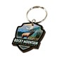 Rocky Mountain NP Bull Elk Emblem Wood Key Ring | American Made