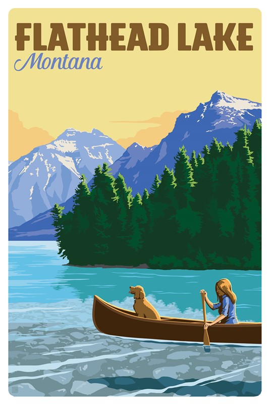 The vibrant blue waters and rich green trees of Montana displayed on this USA -made soft touch coaster liven up any countertop, table, or desk. This image depicts one of the various popular pastimes at Flathead Lake: canoeing. Glide along the dreamy waters of this amazing lake. Then display this coaster as a tangible manifestation of that most cherished memory.