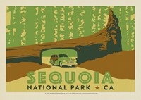 Tourists drive through a tunnel carved out of a fallen tree in Sequoia National Park.